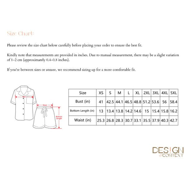 Material Description: 95% Polyester +5% Spandex. Women’s silk pajama set is made of unique satin fabric, which is very soft, lightweight, and comfortable. The comfort is close to the touch of mulberry silk. Includes short sleeve shirt, classic notch collar, full button design and pajama shorts: bow tie decor, high & elastic waist.